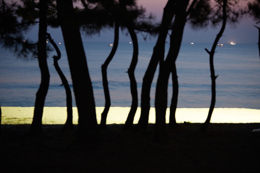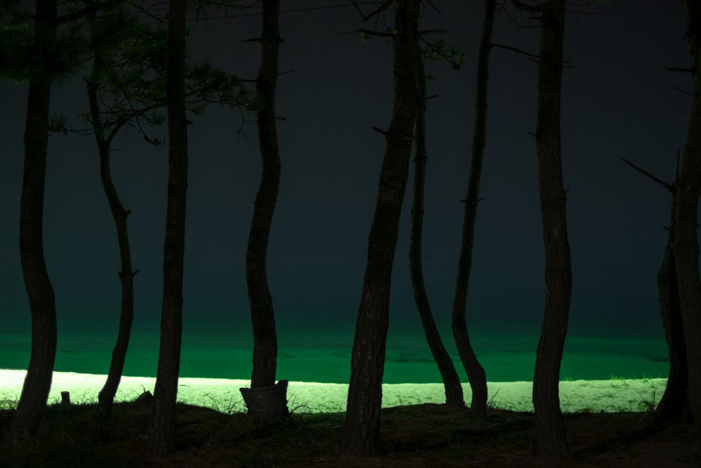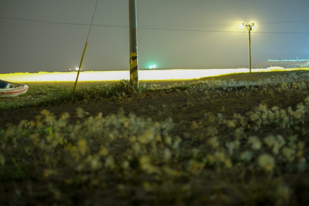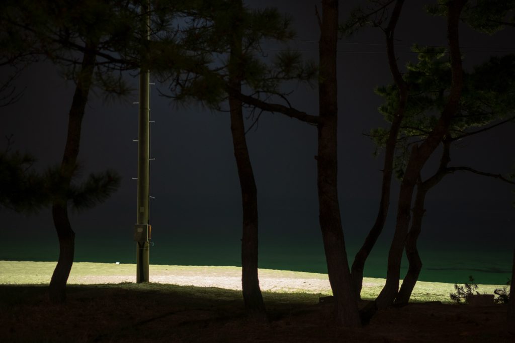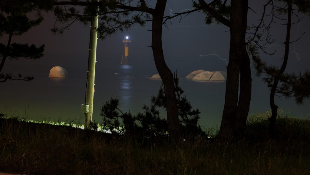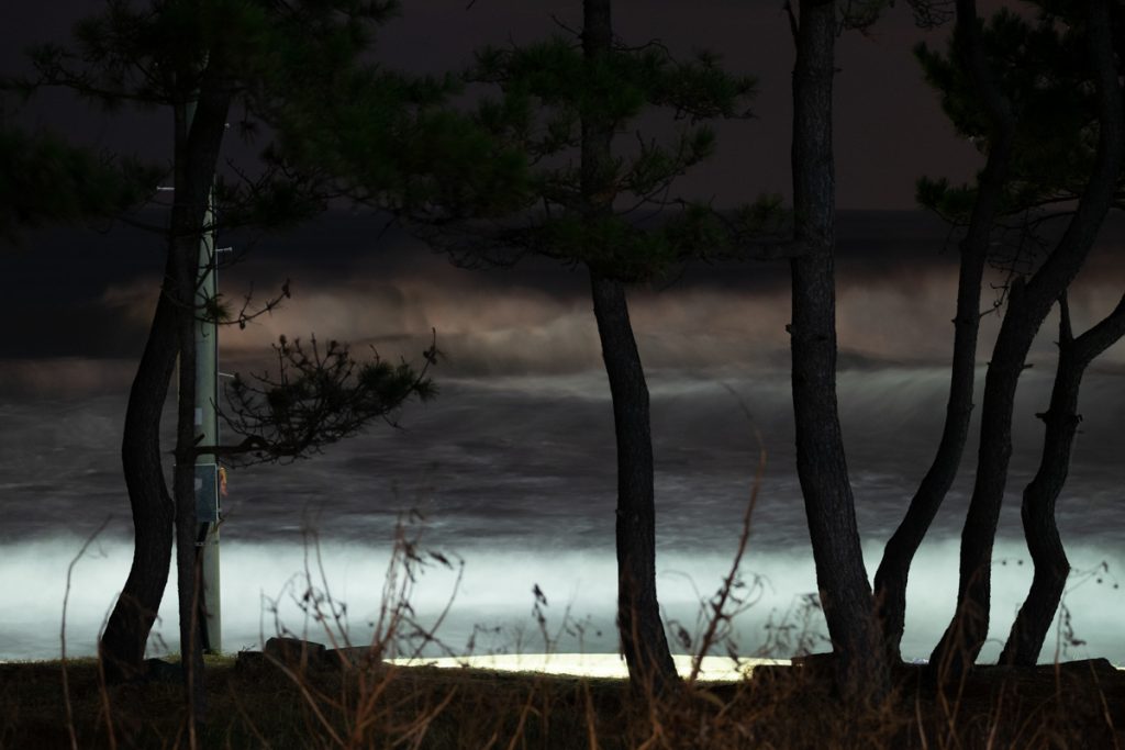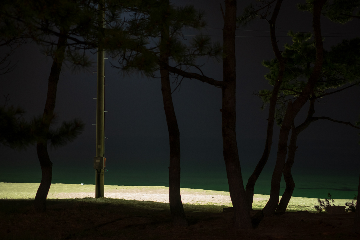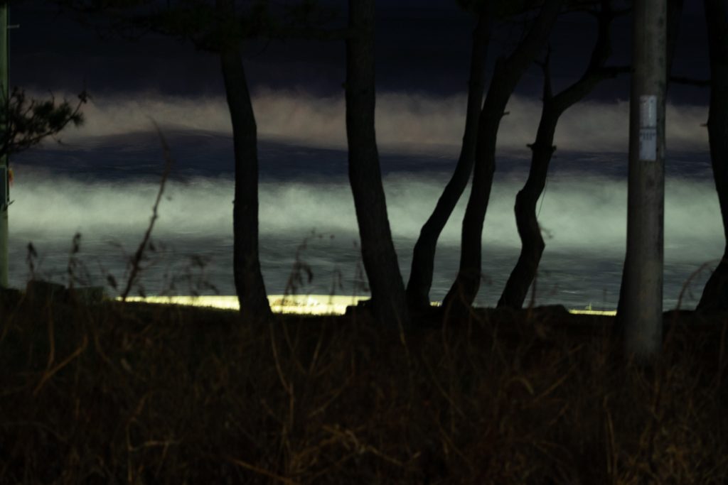 《After Nightfall》은 밤이 내려앉은 해안선을 따라 펼쳐지는 고요한 긴장의 풍경이다. 보이지 않는 경계와 그 너머의 어둠이 맞닿는 곳에서, 빛은 유일한 언어처럼 희미하게 깜박인다. 작가는 인간의 존재를 드러내지 않은 채, 남겨진 흔적과 미묘한 불안을 통해 밤의 정서를 기록한다. 이 작업은 경계의 풍경을 통해 ‘보이지 않지만 존재하는 것들’을 응시한다.