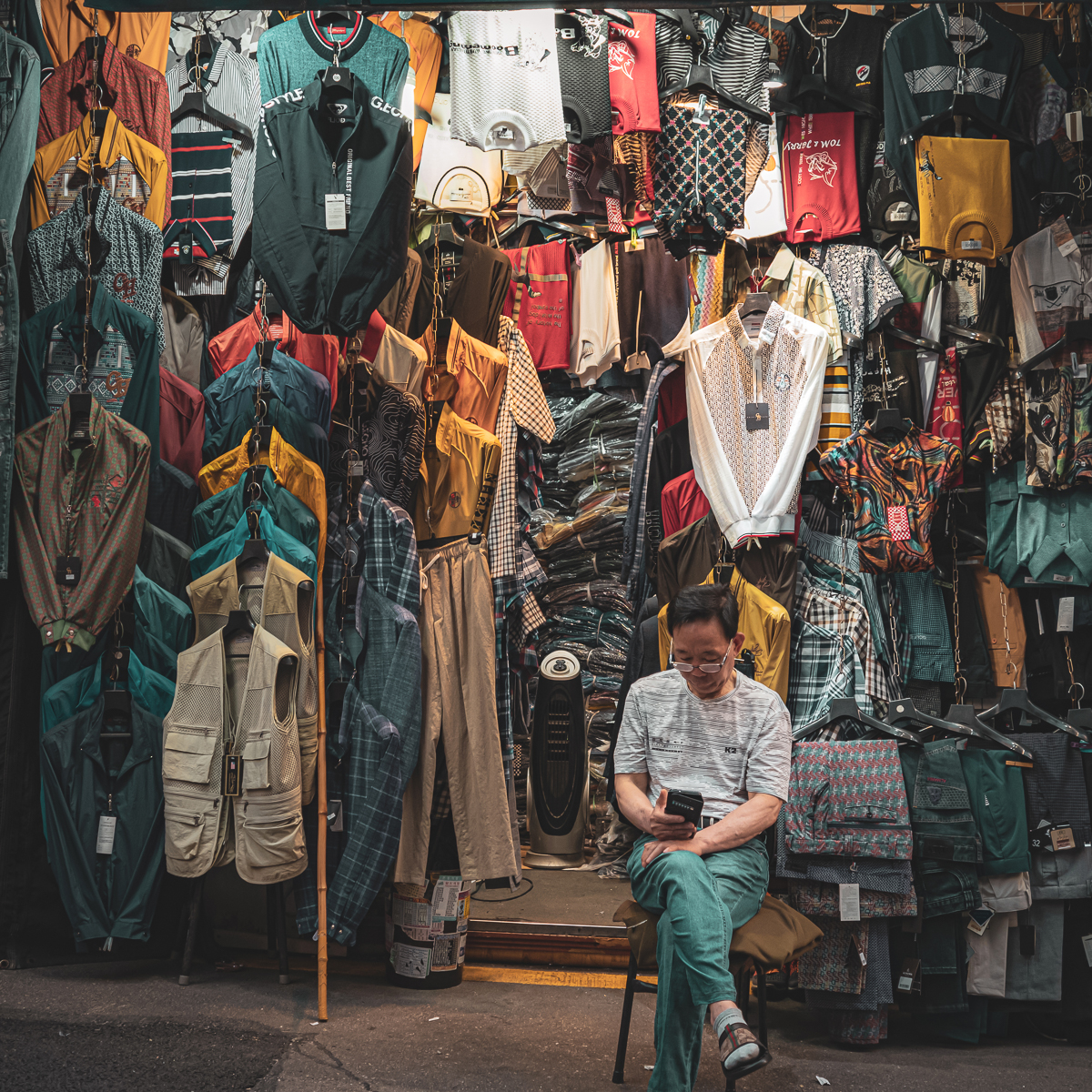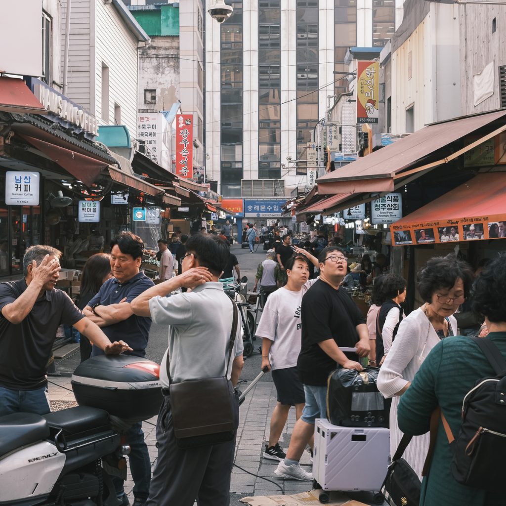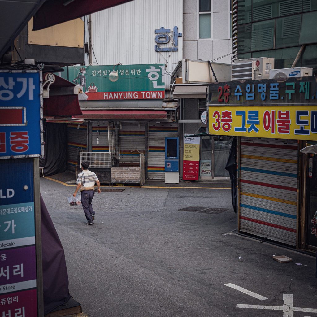 하늘 높이 솟은 빌딩들이 무심한 시선으로 시장을 내려다보는 가운데, 남대문시장은 여전히 현대화의 거센 물결에 휩쓸리지 않은 채 자신만의 시간을 지켜오고 있다. 빛바랜 간판이 걸린 오래된 건물들은 서로 다른 공간 속에서도 묘한 조화를 이루며 살아 숨 쉬고 있다.