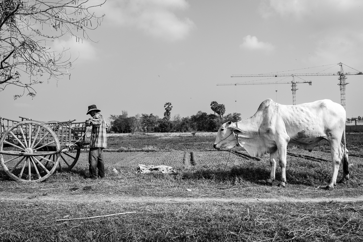 내가 거주하던 프놈펜 외곽에는 서로 극명하게 다른 두 세계가 공존하고 있었다. 한쪽에는 중국의 영향력 확대와 급속한 도시화의 결과로 생겨난 분주한 건설 현장이 있었고, 다른 한쪽에는 여전히 소와 쟁기를 이용해 땅을 일구는 전통적인 캄보디아 농촌 마을이 있었다. 나는 이 강렬한 대비에 매료되어, 그곳에서 살아가는 사람들의 일상을 기록하기 시작했다. 나는 그들을 ‘프놈펜의 마지막 농부들’이라 불렀다.